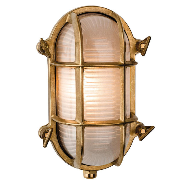 Suitable for both exterior and interior use Nautic is a classic marine style bulkhead. Solid brass in construction it is a truly timeless piece. It may be used as a wall light or a ceiling fittings and is available in a natural brass or a nickel finish.
