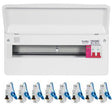 This consumer unit is supplied with an installation pack which includes a busbar, an icon label pack, and a grommet strip.